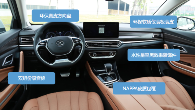 内饰软质材料包裹材料,不仅采用了豪华车才有的Nappa皮质包裹,触感堪比奢侈品名包,车内气味上的讲究,比豪华品牌更加表现优异,通过多重管控手段确保整车用材的环保性,令整车回收利用率高达95.7%。即使经过高温暴晒,车内也无法感知到甲醛异味。采用专用滤芯的AQS空调管理系统,有效去除PM2.5和花粉,让周末出游的途中,就能提前感受到大自然的清新气息。